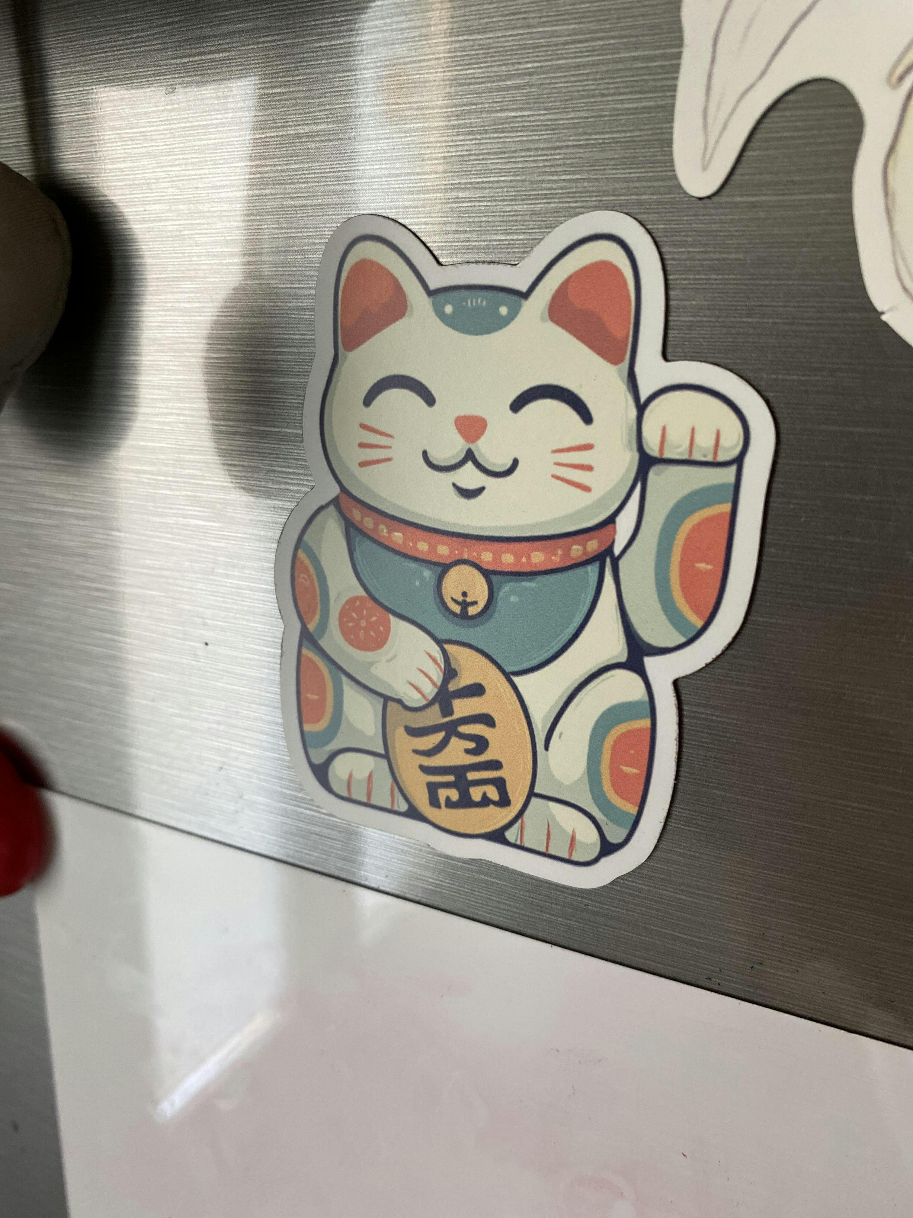 Un aimant Maneki Neko pour personnaliser votre frigo, porte bonheur et kawaii