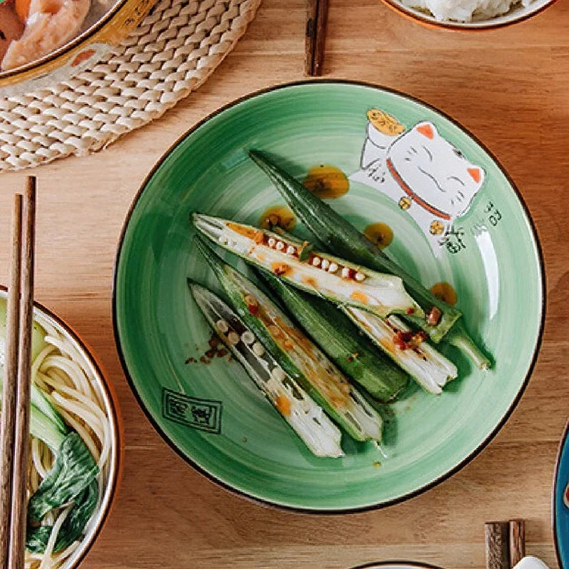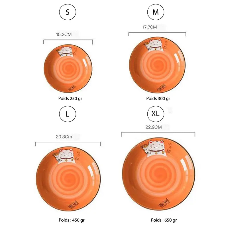 Mettez de la couleur à table avec notre assiette chat porte-bonheur 🍽️🐾! En céramique de haute qualité et peinte à la main, elle est disponible en plusieurs couleurs et différentes tailles. Pour vos plats, vos salades, vos apéritifs ou pour décorer, cette assiette rend hommage au célèbre Maneki Neko japonais. Une pièce artisanale premium aussi pratique qu'originale, pour rendre vos repas encore plus agréables.