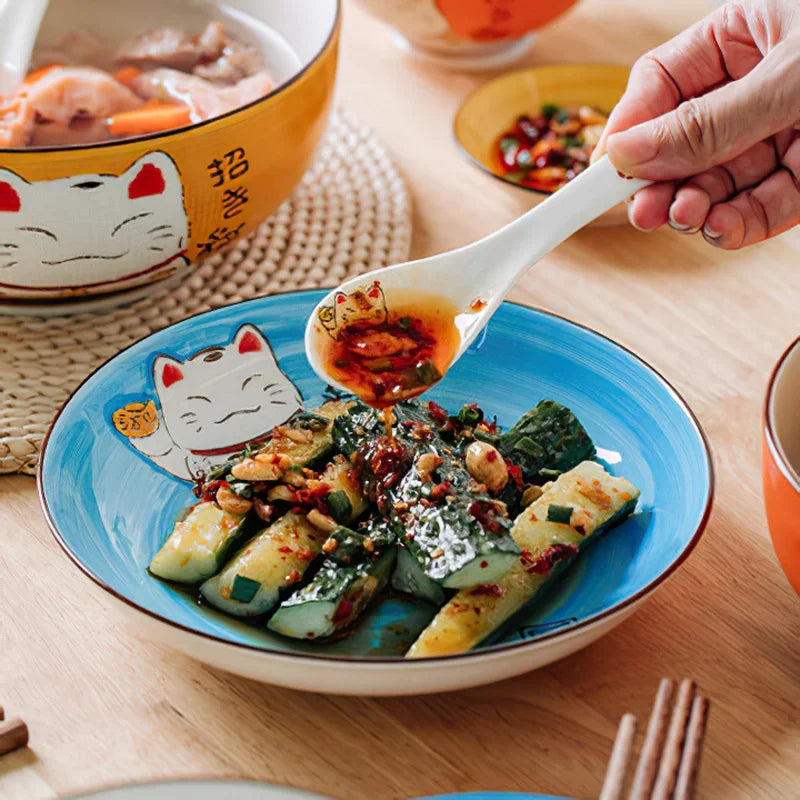 Vous voulez de quoi accompagner votre assiette ? Vous pourriez aimer notre Cuillère à Soupe Chat Porte-Bonheur. Et pour plus d'informations sur le chat Maneki Neko ou nos offres du moment, visitez notre page : Chat Chanceux.