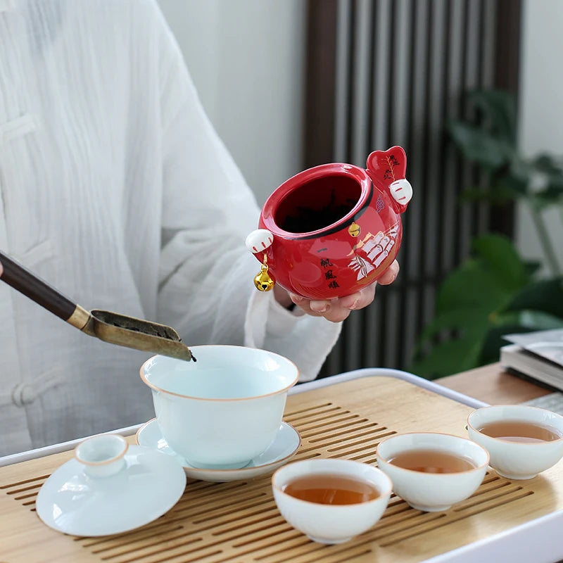Une boîte à thé à l’effigie du chat chanceux, pratique et plein de sens