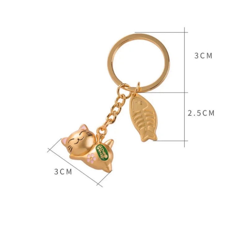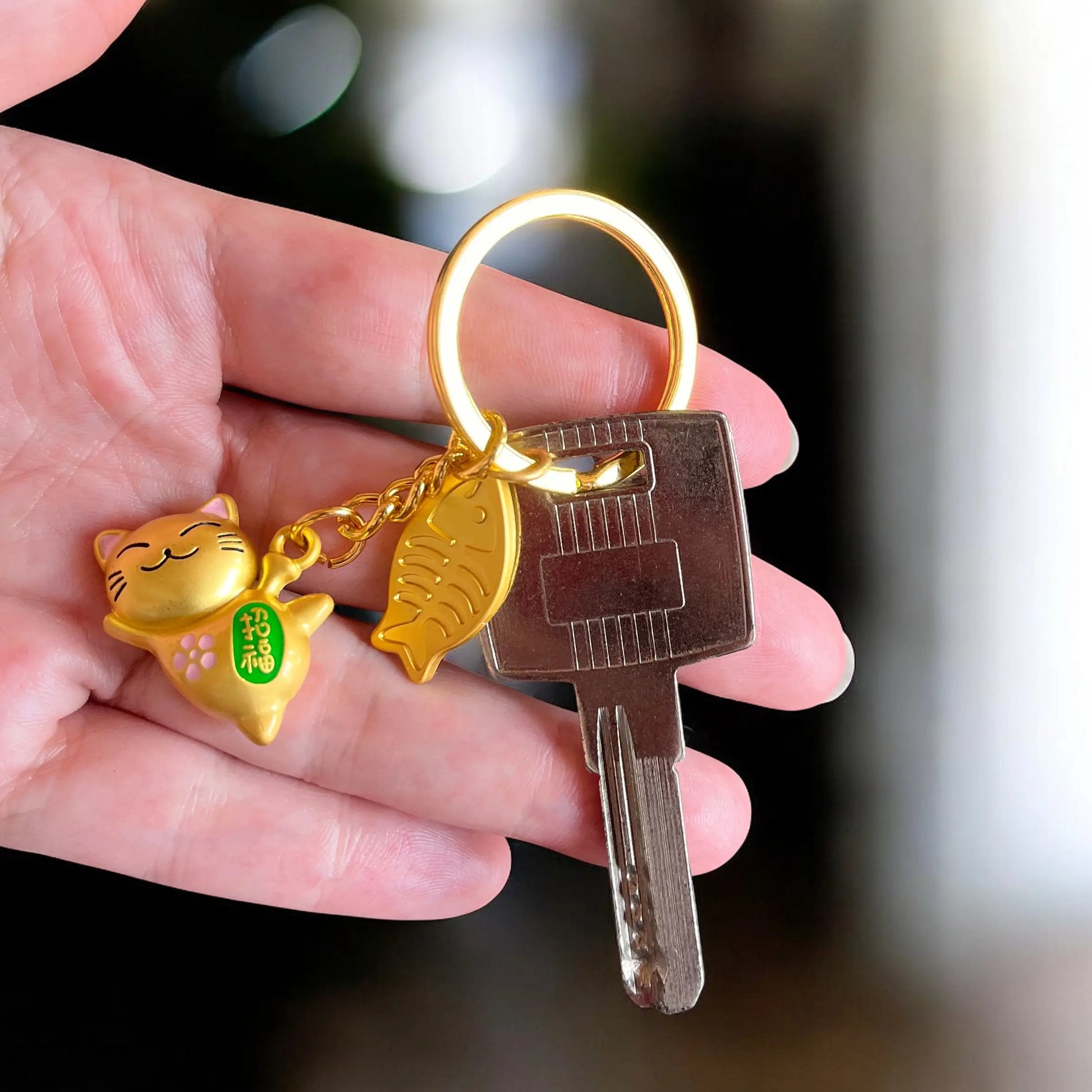 Porte-clés Maneki Neko : un chat chanceux doré à emporter partout