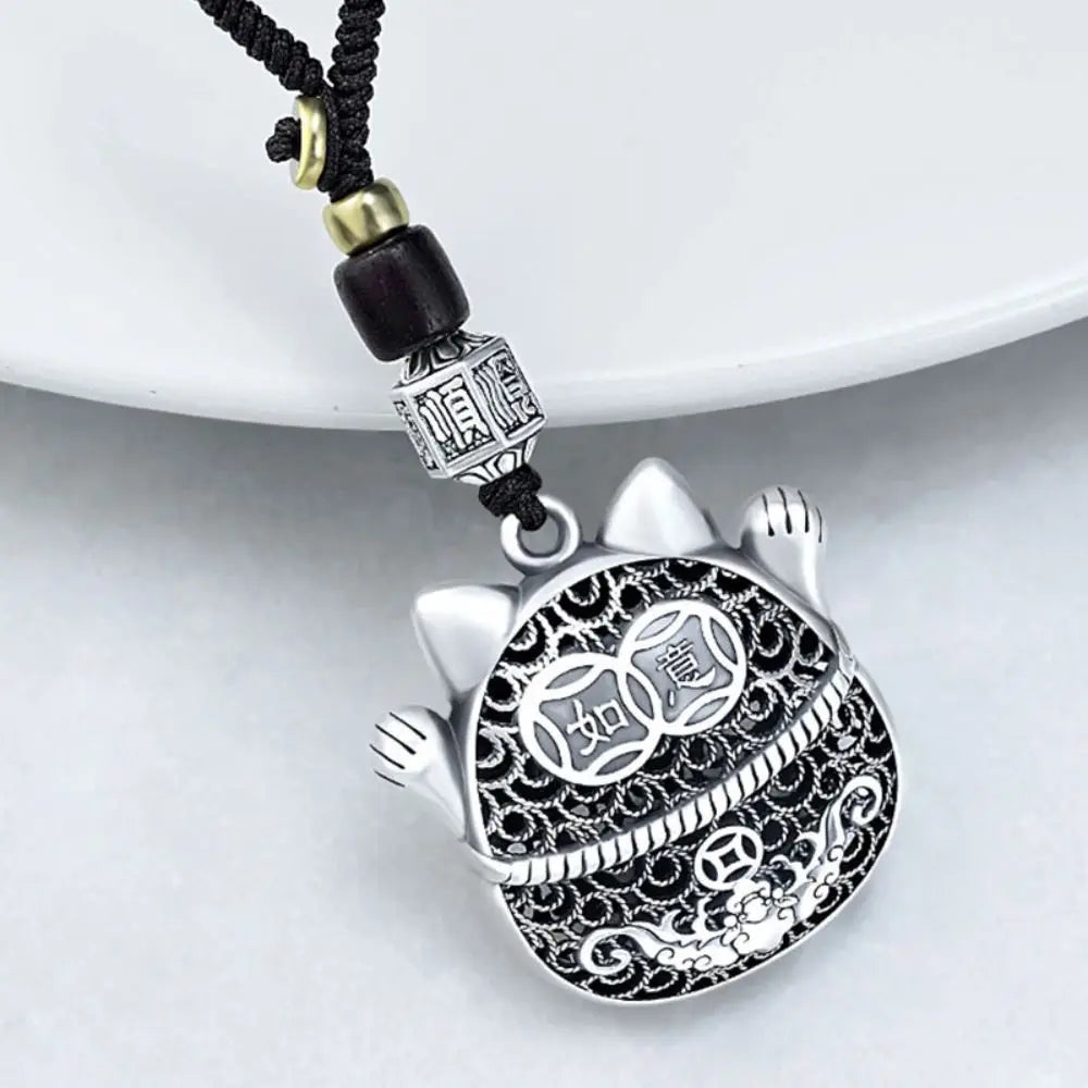 Métal filigrané couleur argent et Maneki Neko, la protection pour vos clés