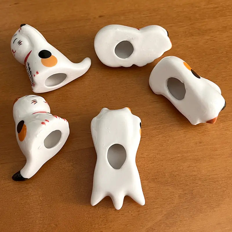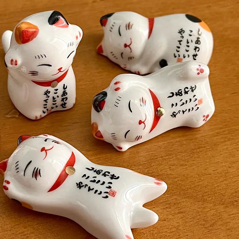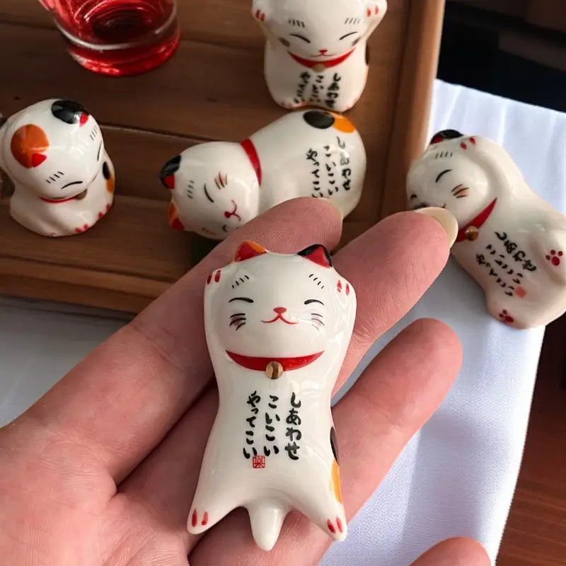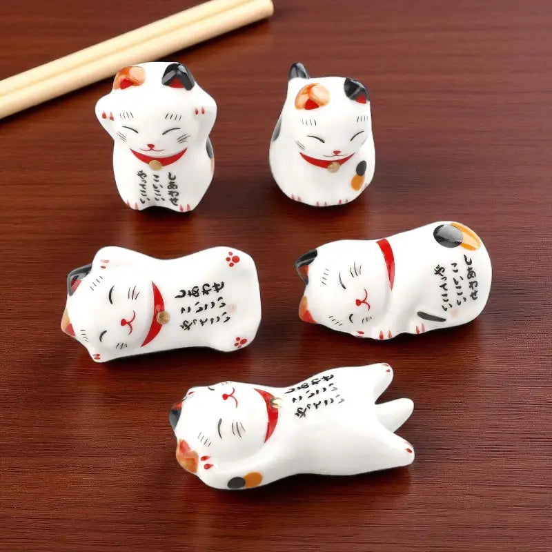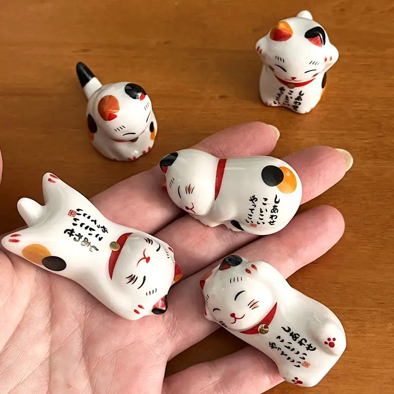 Ces repose baguettes chat porte-bonheur en céramique sont conçus pour maintenir vos baguettes propres entre deux bouchées. Ils évitent de salir la table et apportent une touche raffinée à vos repas. Fini de stresser à chaque soirée sushi ! 🍣 Leur design en forme de Maneki Neko, symbole de chance et de prospérité en Asie, leur donne une dimension conviviale et ultra-mignonne. Le set comprend cinq chats en différentes positions. De quoi rendre vos repas un peu plus amusants, en plus d’avoir un charme unique ! Et en plus, ces petits chats chanceux sont faciles à nettoyer, résistants et réutilisables.