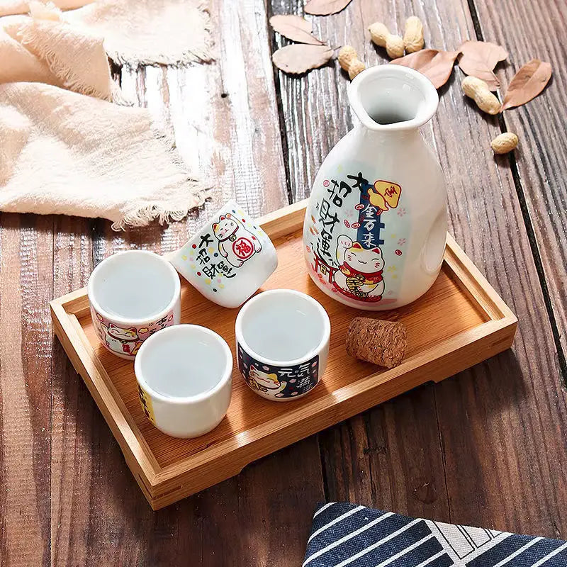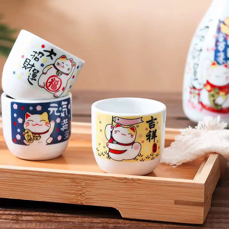 Un service à saké chat chanceux, traditionnel et porte-bonheur